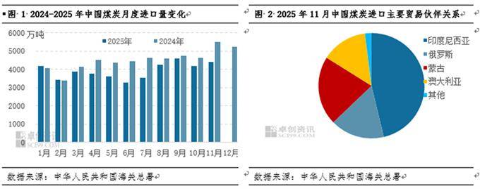 2025年中国煤炭进口量呈现前低后高态势,全年进口量同比下滑或已成事实