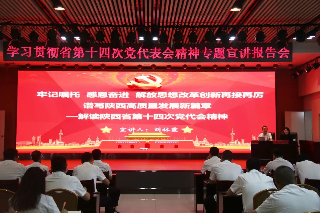 会上,刘林霞以省委书记刘国中《牢记嘱托,感恩奋进,解放思想改革创新再接再厉,谱写陕西高质量发展的新篇章》报告为主题,围绕“通过一个好报告,选出一个好班子”,从党代会的基本知识、党代会报告的逻辑框架和主要内容等基础知识入手,以设疑解惑的方式,提出三个“为什么”,用“回顾过去,把握现在,展望未来”十二个字和8(过去五年八个方面取得的成绩)6(未来五年六个方面的具体目标)8(完成目标八个方面的要求)9(未来五年九大领域的安排部署)这四个数字,让大家系统全面而深刻的理解和把握了省第十四次党代会精神的核心要义,对大家提高政治站位,做到知行合一起到了指导性的作用。