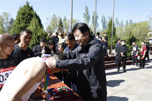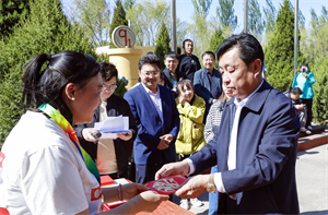 总经理聂占宽为户外跑步第一名获奖者颁发奖牌并发放奖金。