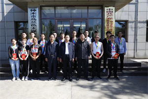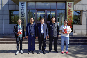 总经理聂占宽、矿长(组织委员)何文飞、财务总监(纪检委员)冯学埃与户外跑步第二名获奖者合影留念。