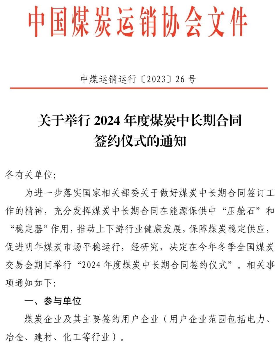 关于举行2024年度煤炭中长期合同签约仪式的通知