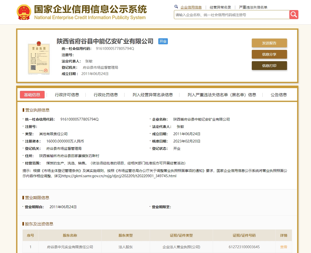 陕西省府谷县中能亿安矿业有限公司