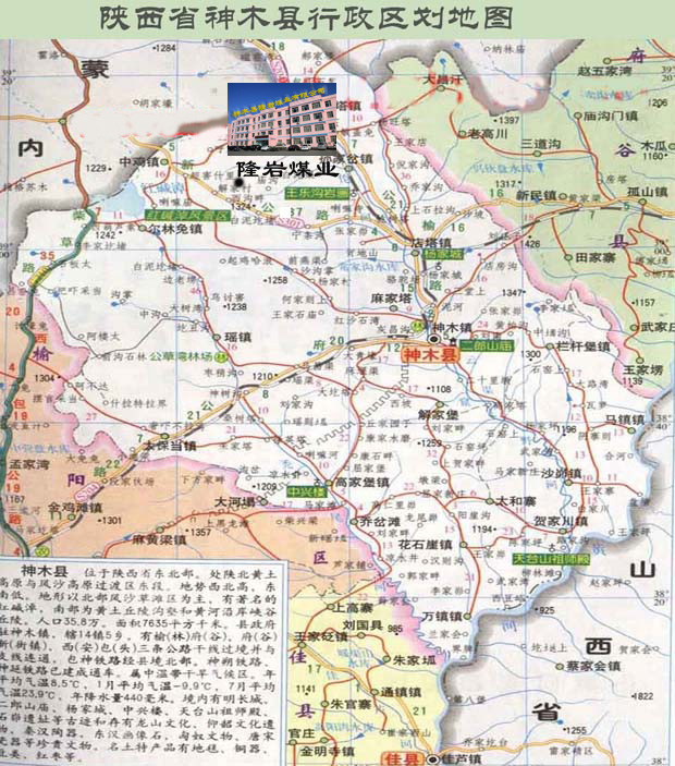 神木县隆岩煤业有限公司煤矿(整合区) (以下简称“隆岩煤矿”)位于陕西省神木县城西北约48km。矿区地理坐标在东经110°14′37″~110°15′34″,北纬39°02′12″~39°03′31″之间,行政区划隶属陕西省神木县孙家岔镇管辖。企业性质为民营合资企业。