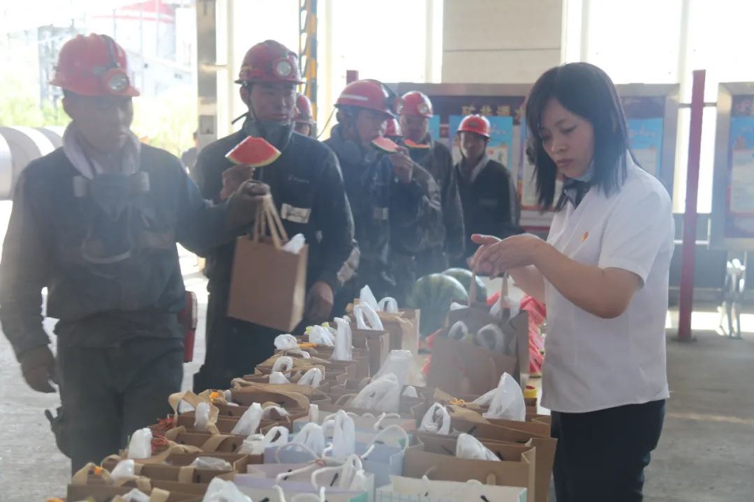 次日,正值6月“安全生产月”活动启动,公司工会工作人员带着煮好的粽子、艾叶香囊、花露水等防暑降温物品和寄往一线的安全嘱托,在公司井口开展了送清凉慰问活动,并依次为公司销售磅房、污水处理厂等辅助岗位人员送去了节日的关怀和慰问。