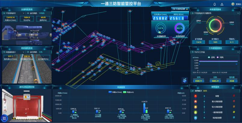 该系统有效融合尖端传感器技术、高效计算机控制算法以及先进网络通信技术,能够实时捕捉并精确分析矿井通风参数,迅速构建并更新通风网络模型,攻克了产品兼容度低、控制系统不统一,以及风窗自动化水平低、调控不精确、区域调风难等技术问题,为煤矿通风管理带来了革命性的创新方案。值得一提的是,系统内置智能辅助决策模块,能够依据矿井实际工况,自动调整并优化通风策略,有效确保矿井通风系统的稳定高效运行,尤其在遇突发情况时,系统能够即刻启动应急响应机制,为矿井安全筑起一道坚实防线。