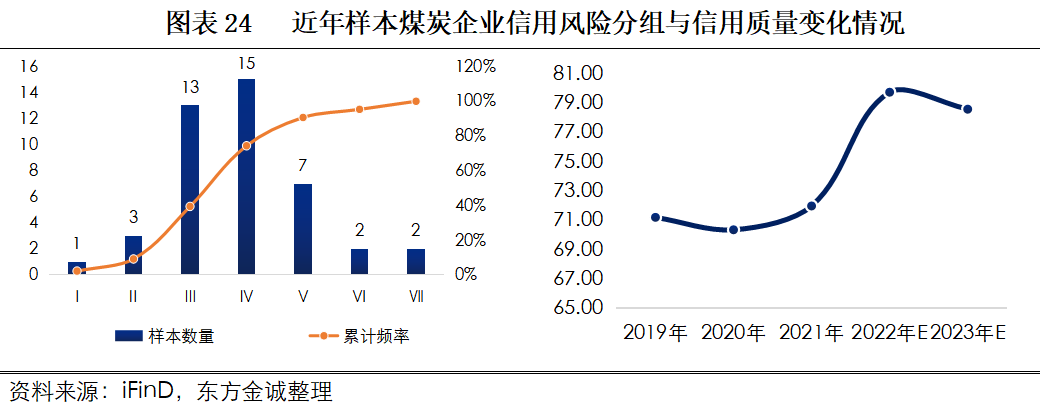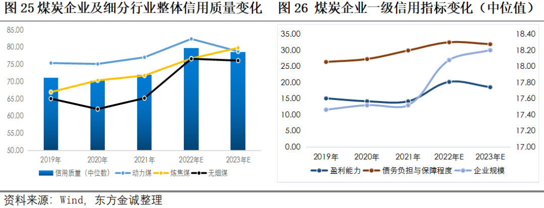 2022年,受益于煤炭价格上涨,煤炭企业信用质量提升,预计2023年煤炭行业信用质量高位有所回落