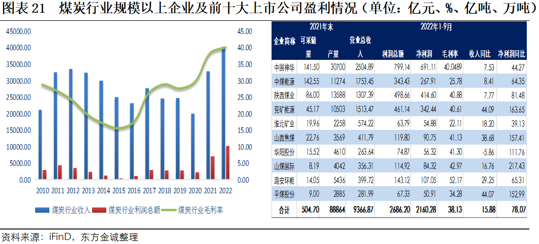预计2023年,大型煤炭企业产能核增或先进产能进一步投放,煤炭产量小幅增加,煤炭销售价格维持高位,净利润保持较高水平,净利润增速将有所放缓。