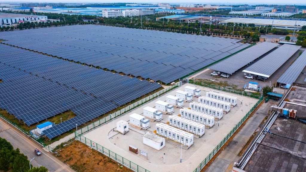 图为骆驼集团襄阳蓄电池有限公司厂区内的光伏和储能电场。新华社发(李俊蕾摄)