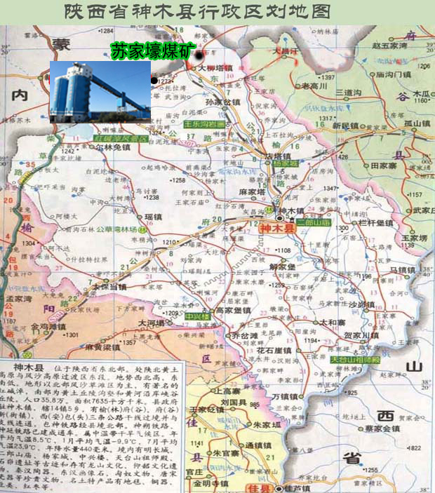 苏家壕煤矿是内蒙古伊泰集团有限公司和陕西亚华煤电集团有限公司的联营煤矿,地处陕西省神木县北部的陕蒙边界处,南距神木县大柳塔镇10km。交通便利,以大柳塔为中心的矿区交通网四通八达,并向省外辐射,行政区划隶属神木县大柳塔镇。井田属陕北侏罗纪煤田神木北部矿区前石畔井田和大柳塔井田的结合部,北部与郝家……