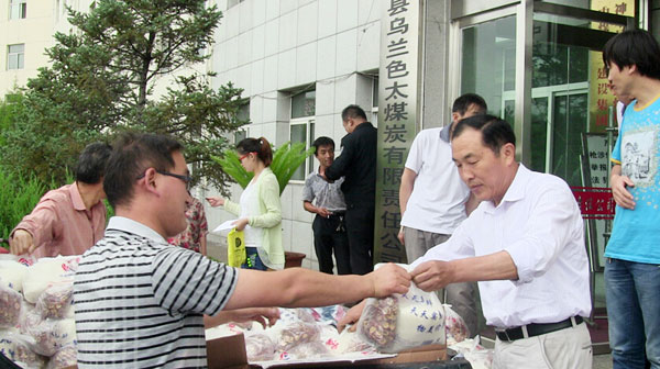 2014年7月12日,盛夏时节,烈日炎炎,为了更好的让公司工人安全生产,防止炎热夏季高温中暑,公司综合办为员工发放了白糖、山楂等防暑降温物品,充分体现了乌兰色太煤炭有限责任公司精心安排从员工生活入手,关心员工身心健康,在炎热的季节带来了精神鼓舞和支持,公司希望工人师傅劳逸结合、保重身体、再接再厉、共铸辉煌,为公司的发展贡献力量!(文/图 贾伟)