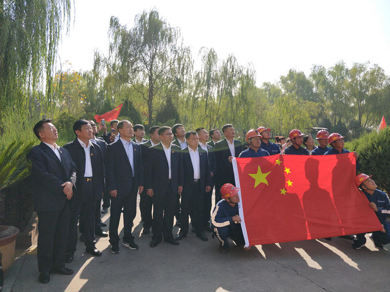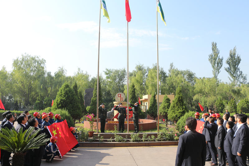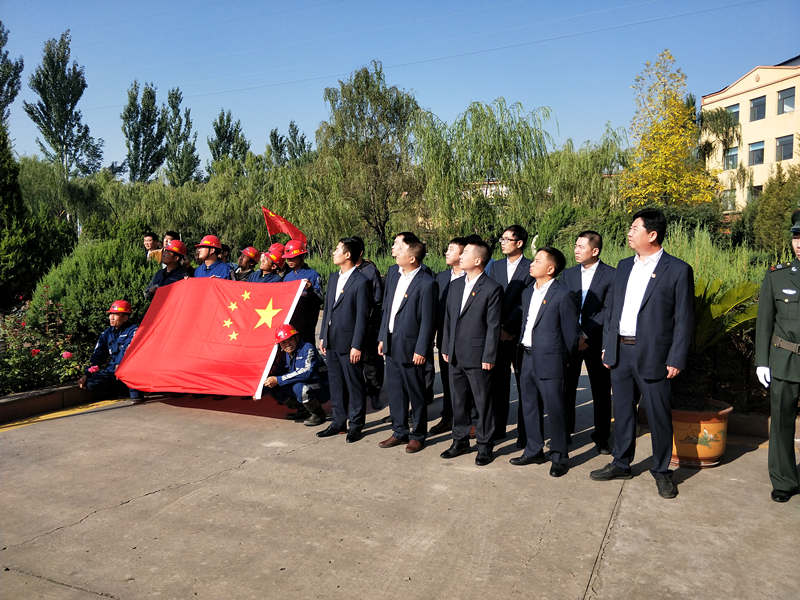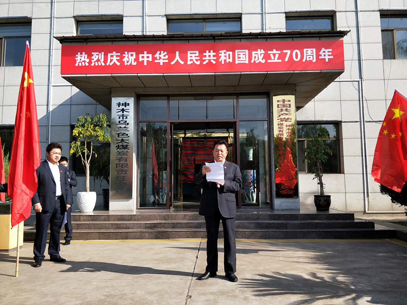 为了热烈庆祝中华人民共和国成立70周年。9月25日上午,乌兰色太煤矿职工、领导干部在办公楼前,举行了庄重的升国旗、奏国歌仪式。