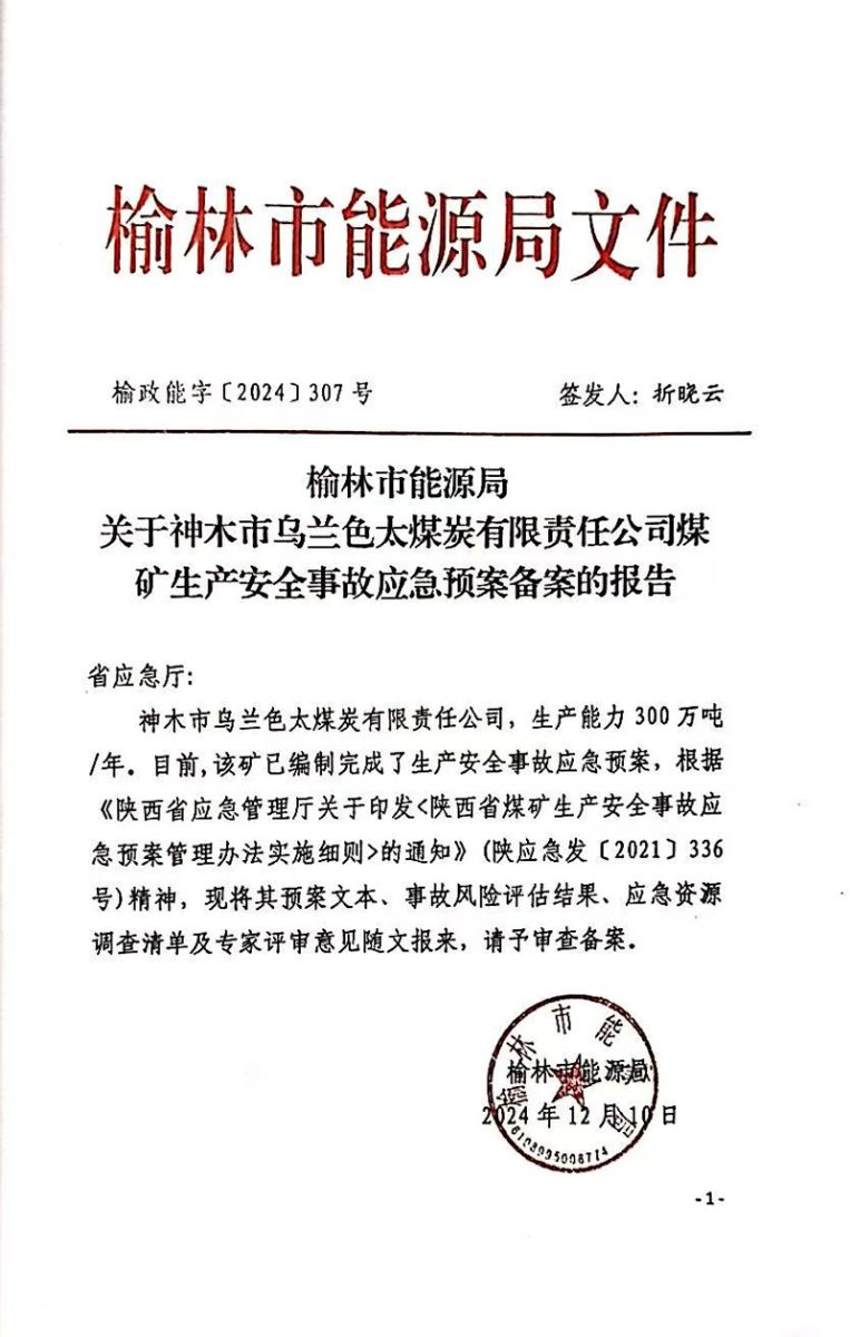 附件1(2025-11-01):《2025年乌兰色太煤炭有限责任公司生产安全事故应急预案》.doc