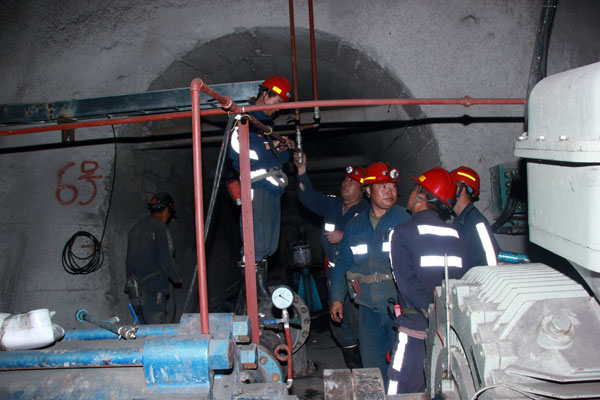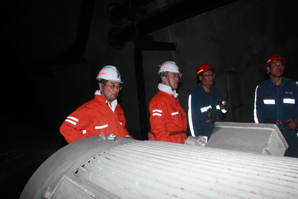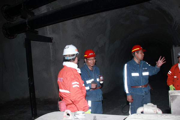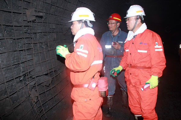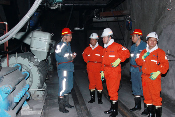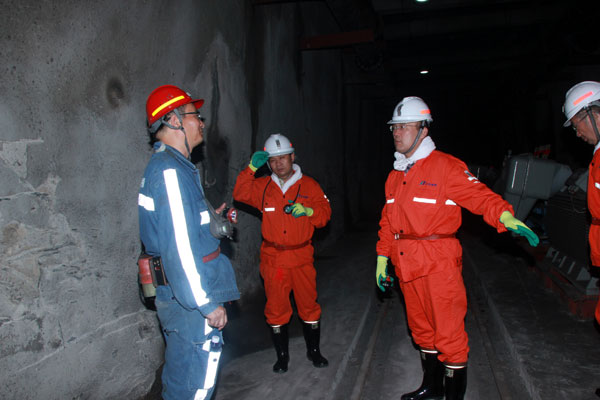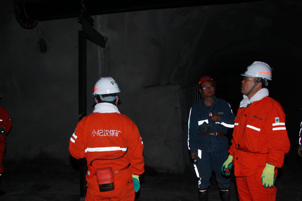 总工程师李虎民及副矿长惠学齐与陕西省发改委在井下视察