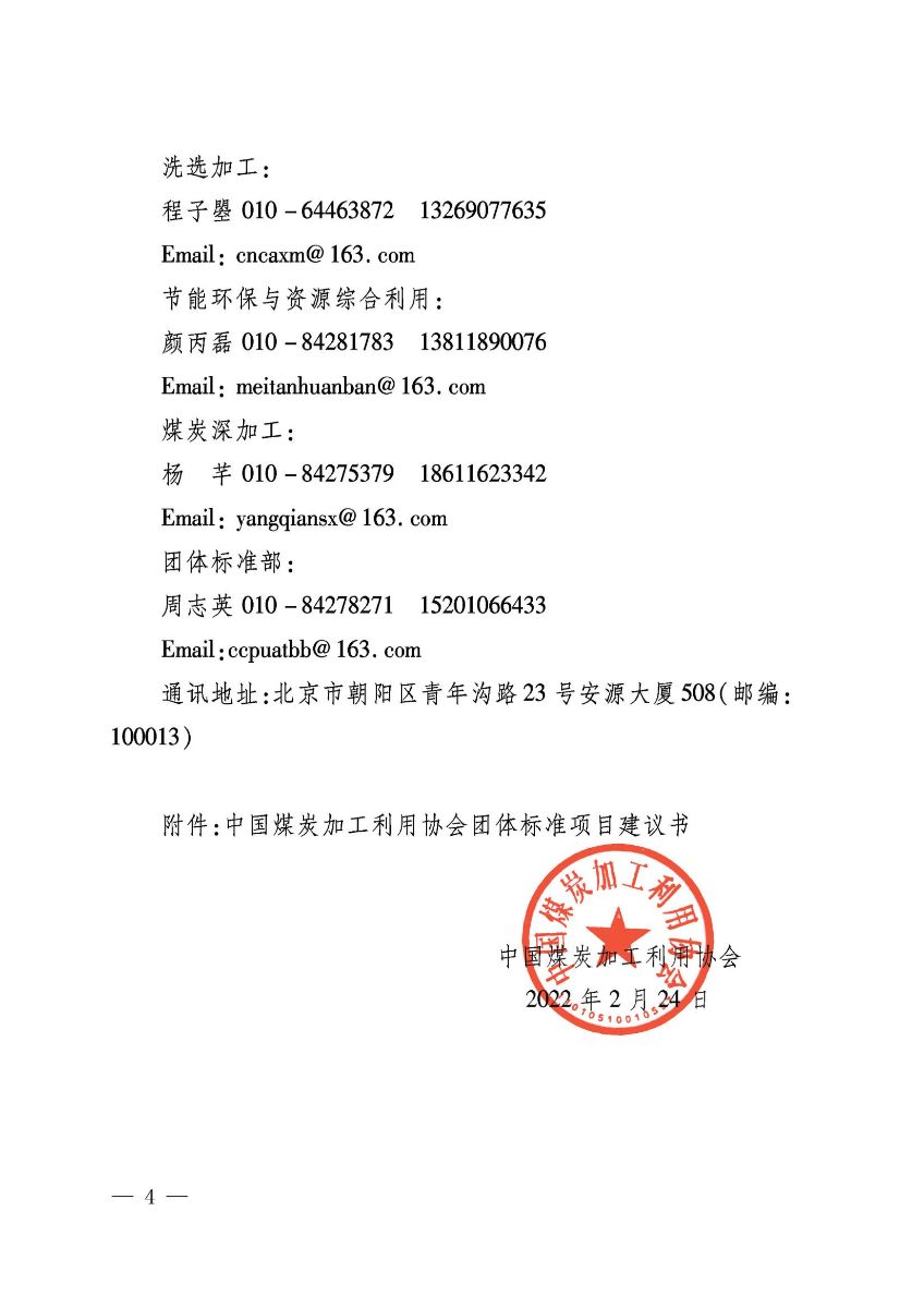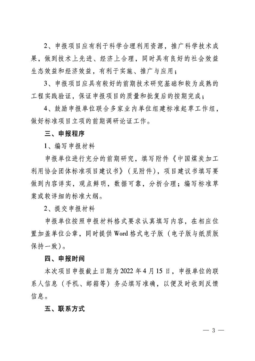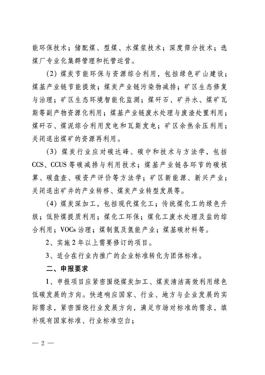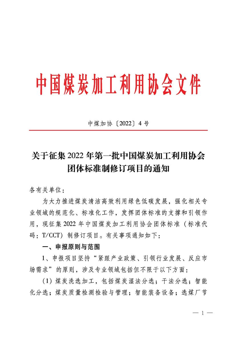 关于征集2022年第一批中国煤炭加工利用协会团体标准制修订项目的通知