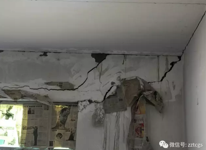 由于受特大洪水冲推,淤泥沉积,导致地基下沉,楼房内外墙壁裂缝(有的地方裂缝约3公分),瓷砖掉落,室内地面地板鼓起、破碎,成了严重的危楼(房)。