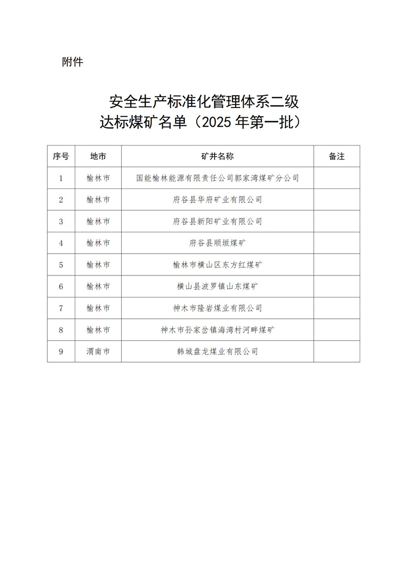 附件:安全生产标准化管理体系二级达标煤矿名单(2025年第一批)