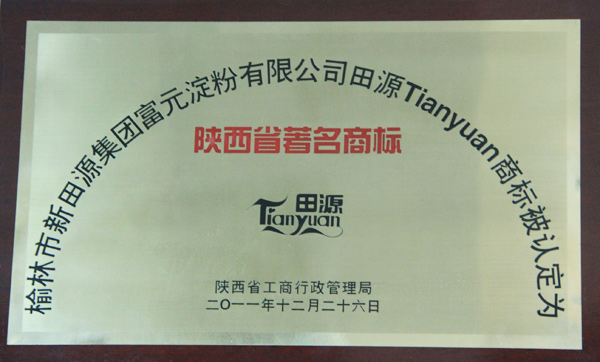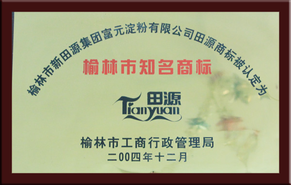 我公司注册商标为“田源”牌,2003年“田源”牌淀粉被省、市消协评为消费者信得过品牌;“田源”商标2004年被评为榆林市知名商标.......