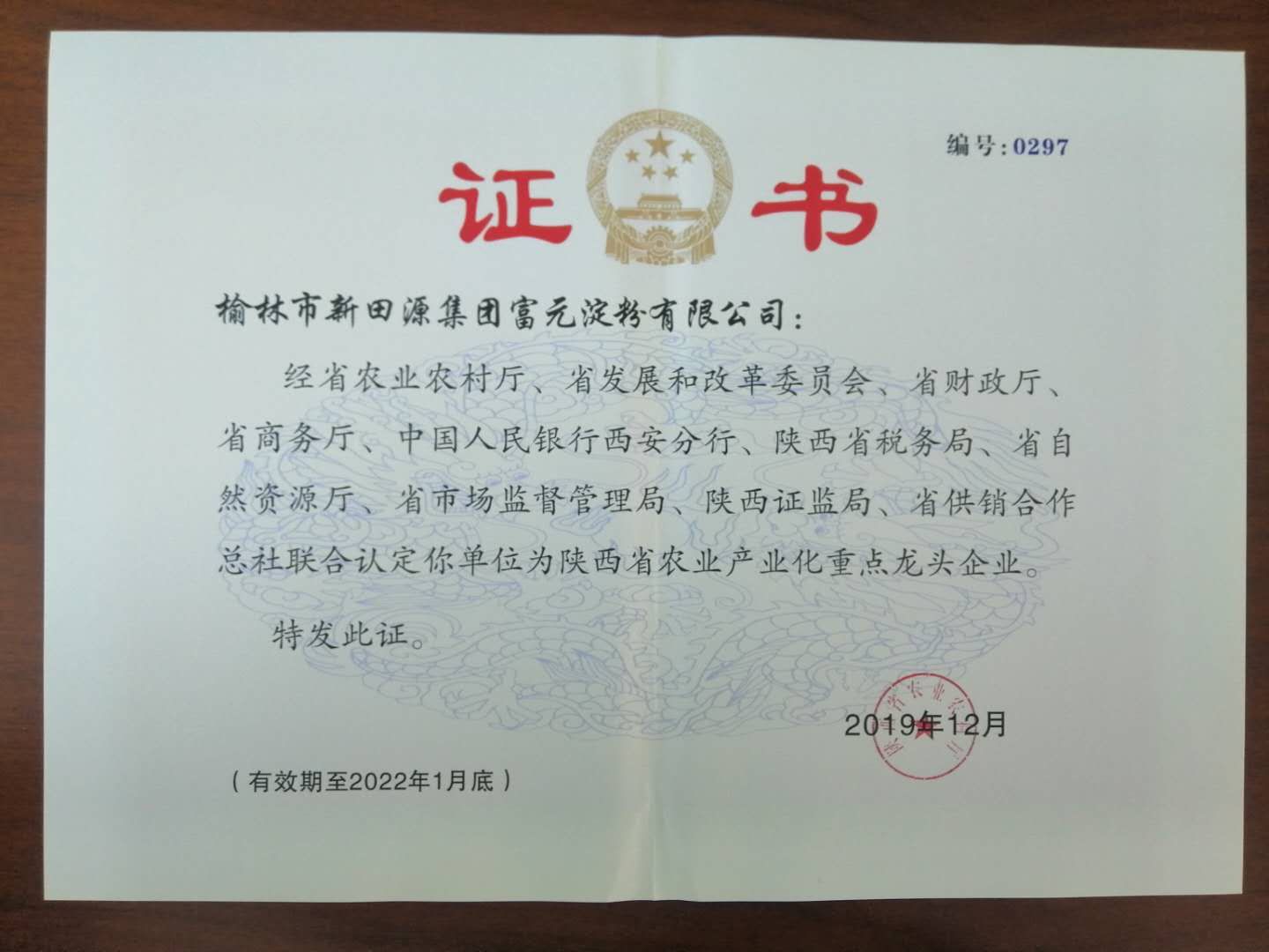 榆林市新田源集团富元淀粉有限公司曾荣获优秀龙头企业,重点龙头企业,重点扶持企业........