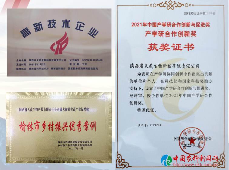 榆林合力天芪生物公司着力解决产业发展中的各类技术难题,从攻克技术项目、攻关申报项目、攻坚课题项目等方面,将研究成果转化为企业发展的核心竞争力;通过开展高效液相色谱仪培训、赴三川口黄芪中药材示范基地实践培训等活动,不断提高党员干部适应本职工作的专业水平;在质量检测方面,针对前处理车间生产样品和提取车间提取物样品进行净含量、外包装、水份、灰份、重金属、微生物、农药残留检测,严格把关、保证产品质量。在甘草酸粉提纯过程中,通过对工艺中温度、时间、溶剂、料液比、絮凝剂等因素进行优化试验、改善设计,提高了提取物产品澄清度和收率,平衡甘草酸、甘草苷的比例,目前该项技术已达到国内领先水平,使得天芪生物公司成为国内掌握该技术的两家单位之一,2023年签订提取物订单100吨,提高了植物提取车间设备利用率,年产值达到1050万元;先后荣获“榆林市乡村振兴优秀案例”“2021年中国产学研合作创新与促进奖”“榆林市企业研发投入20强”等荣誉。